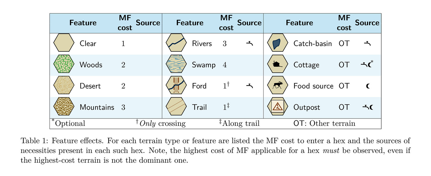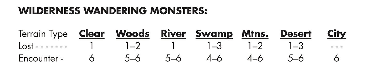 Then I just went for it using a combination of the Outdoor Survival distances and OD&D Lost/Encounter rolls…