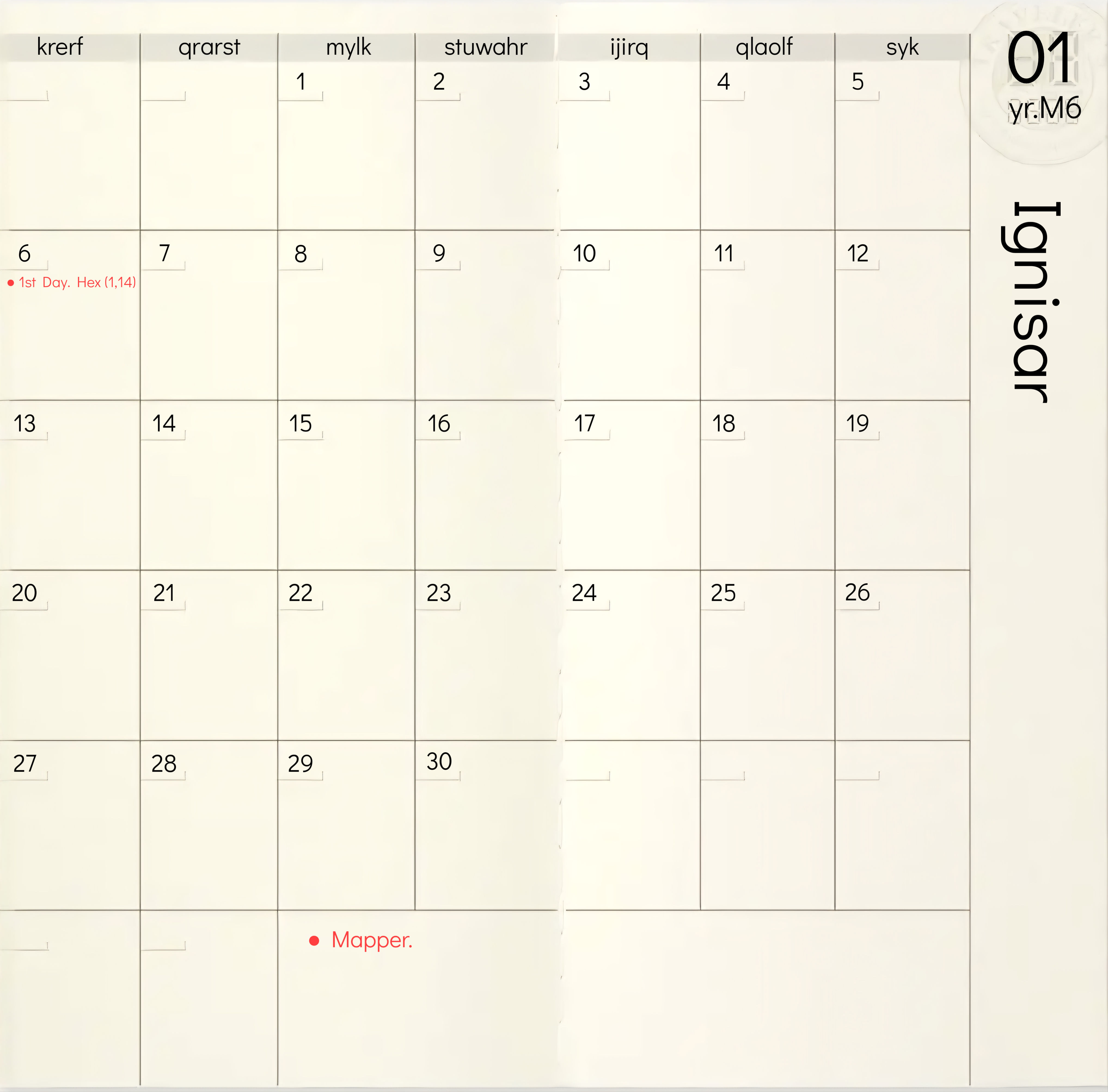 To keep track of when the Mapper would return to civilisation, I made a 30 Day Calendar, rolled a d30 for what day they set out.